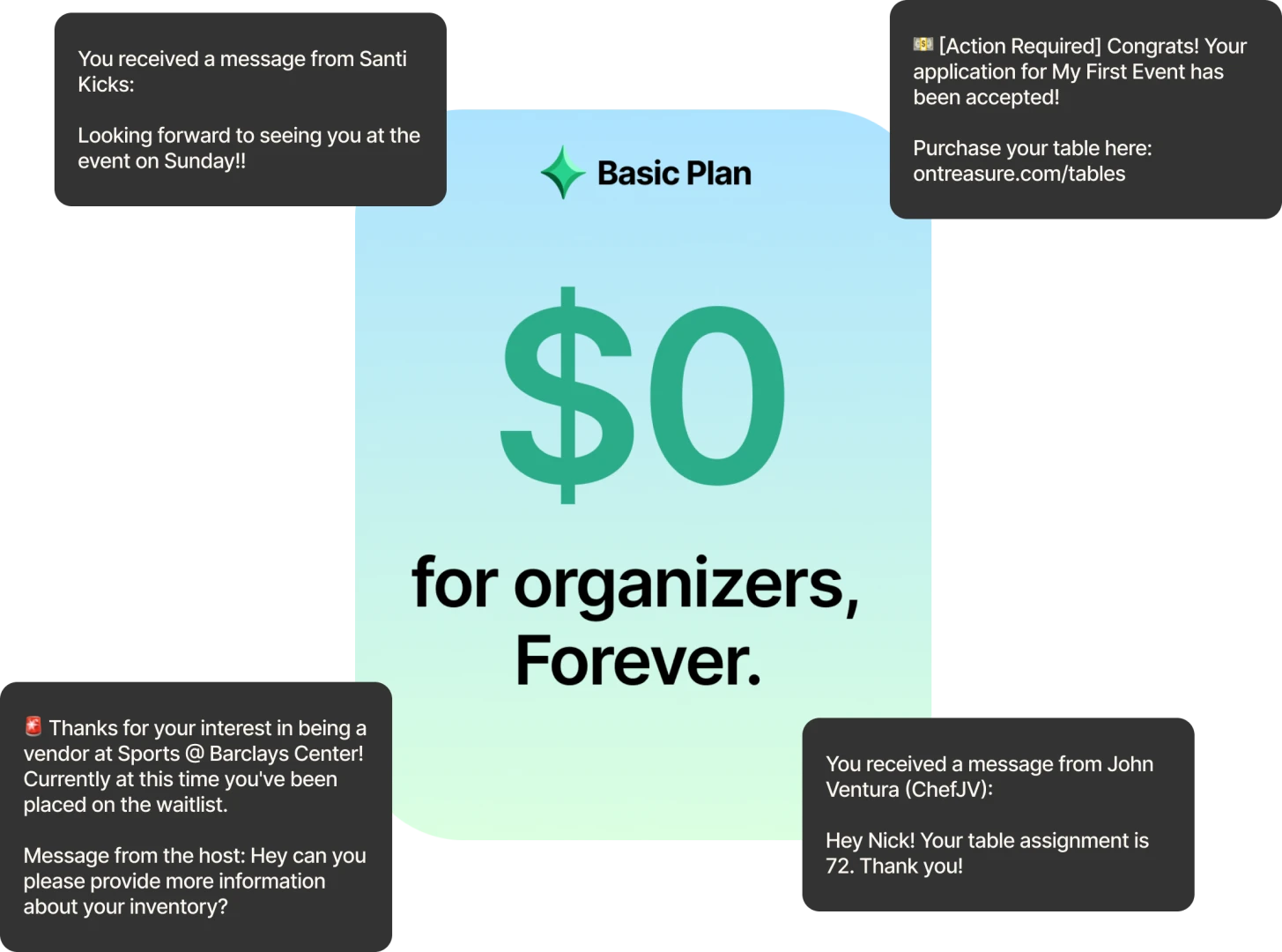 Unlimited messages blasts are included with our free tier at no additional cost to organizers